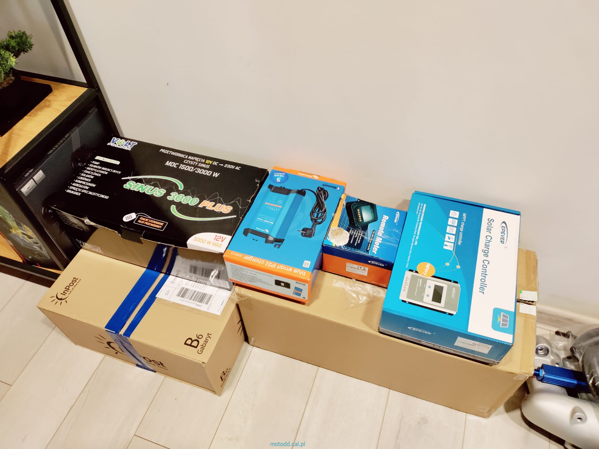 W załączniku  SCHEMAT 1 zamieściłem schemat rozmieszczenia urządzeń w Hymerze, tłem jest faktyczne ustawienie mebli więc dało mi to lepszą informację nawet o orientacyjnych długościach kabli i każdemu polecam taki schemat narysować.  Jak już wspomniałem w wyszukiwaniu już konkretnych rozwiązań pomógł mi Tomek bazując na swoich doświadczeniach w podobnym zabiegu, który przeprowadzał u siebie w kamperze oraz wielu blogerów, którzy budują vany, mieszkają w nich i dzielą się wiedzą na swoich kanałach na YouTube. Zaznaczam tutaj, że wybór firm i konkretnych modeli to bardzo indywidualna sprawa, bo nie potrzebujemy przykładowo 200Ah akumulatora, gdybyśmy planowali jazdę tylko na zorganizowane campingi. Nie musimy kupować 40A regulatora MPPT gdy planujemy montaż tylko 1 panelu, gdyż więcej się nam po prostu nie zmieści.
